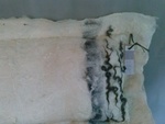 2014vilten kussen, nuno techniek, materiaal: merino wol, zijde, wensleydale lokken, texelaar.